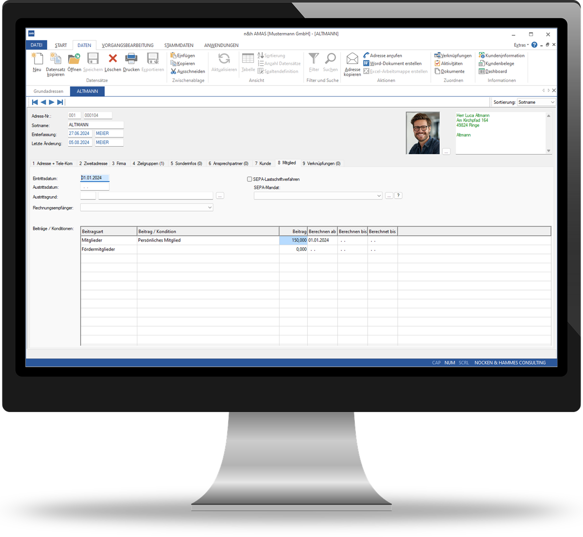 n&h MGL ist in n&h AMAS integriert. Die Anschrift eines Mitgliedes ist sowohl Mitglieder- als auch Marketing- und Kundenadresse, so dass eine doppelte Datenhaltung entfällt.