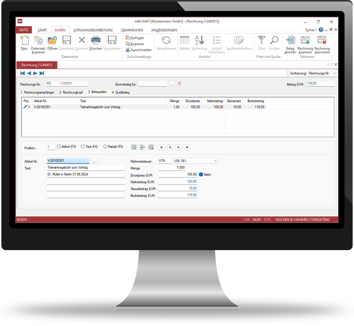 n&h FAKT ist ein modular aufgebautes System zur Fakturierung und Bestandsführung. Das vollautomatische Generieren von Beitragsrechnungen, die integrierte Auftragsbearbeitung, umfangreiche Auswertungen und Statistiken sowie ein ausführliches Kundeninformationssystem sind nur einige Highlights dieser Anwendung. Sie haben vollen Zugriff auf die Adressen aus AMAS, so dass Adressänderungen und Neuanlagen unmittelbar aus n&hnbsp;FAKT erledigt werden können. n&h FAKT ist selbstverständlich mandantenfähig.